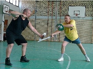 Das Lernen von Strategie und Taktik im "Kampf" sollte an diesem Tag noch nicht beendet sein. Nachmittags trafen sich die meisten Seminarteilnehmer zum Paintballspiel auf einem abgesperrten Gelände, eines über 300 Jahre alten Bauernhofes. Wie im Escrima war auch hier zu sehen, dass Strategie und Taktik "überlebenswichtig" sind. Mehrere Stunden lieferten sich die Teilnehmer "harte Gefechte". Trotz Dornen und blauer Flecken war das Ganze eine "Mordsgaudi". Es war für alle einfach Spaß pur.